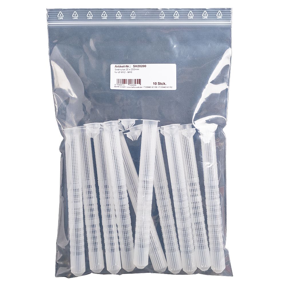 Bei der Montage in Hohlsteinen ist eine Siebhülse zu verwenden, die vollständig mit Verbundmörtel verfüllt wird. Durch den Einsatz von Siebhülsen reduzieren Sie den Mörtelverbrauch, der ohne Siebhülse ungehindert in den ganzen Kammern im Stein verschwinden würde.